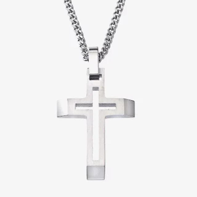 Steeltime Mens Stainless Steel Cross 24 Inch Pendant Necklace