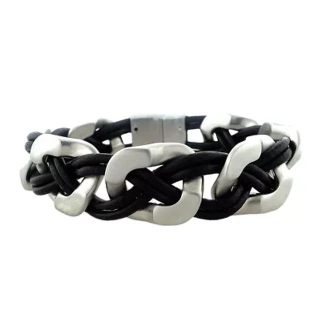 Men's Stainless Steel and Leather Bracelet