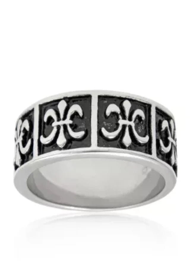 Mens Stainless Steel Ring with Sterling Silver Inlay