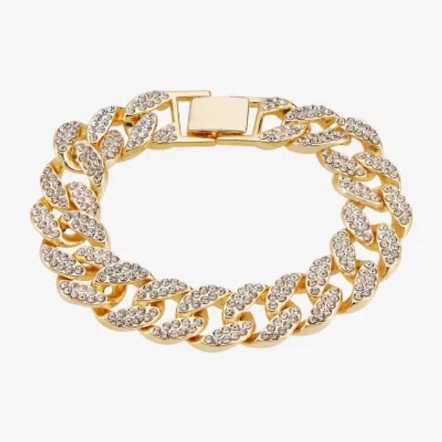 Steeltime Mens 18K Gold Over Stainless Steel Solid Curb Chain Bracelet