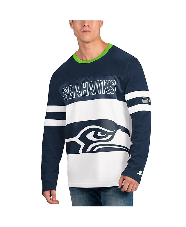 Men's Starter College Navy, White Seattle Seahawks Halftime Long Sleeve T-shirt
