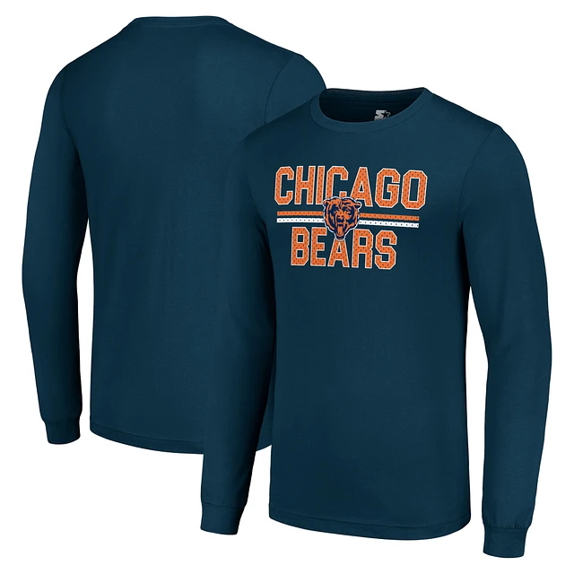 Men's Starter Navy Chicago Bears Team Mesh Print Graphic Long Sleeve T-Shirt