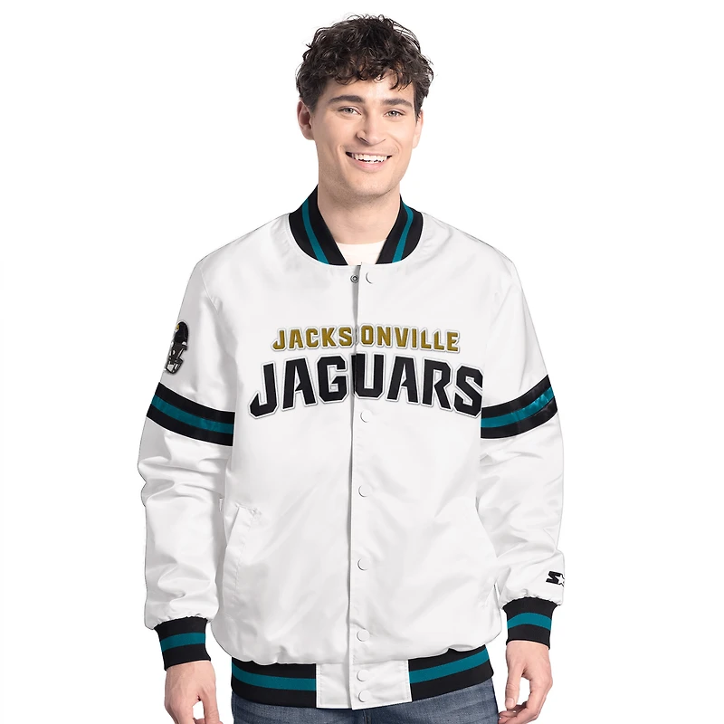 Men's Starter White Jacksonville Jaguars Scout Full-Snap Varsity Jacket in Franklin, TN