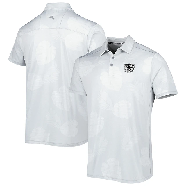 Men's Tommy Bahama Gray Las Vegas Raiders Throwback Delray Frond IslandZone Polo
