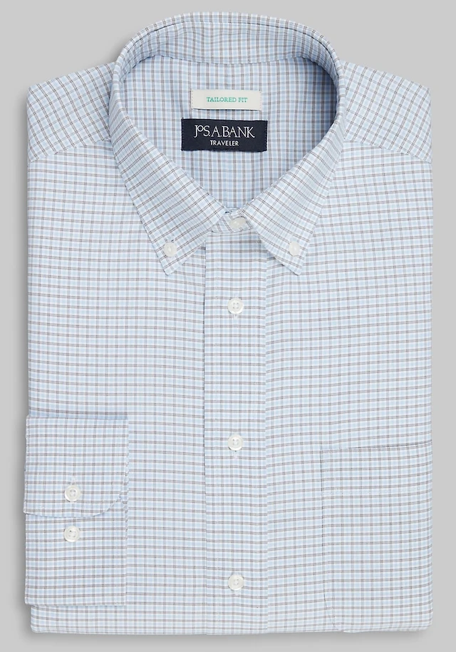 Men's Traveler® Collection Tailored Fit Button-Down Collar Grid Dress Shirt at Jos. A. Bank, Blue