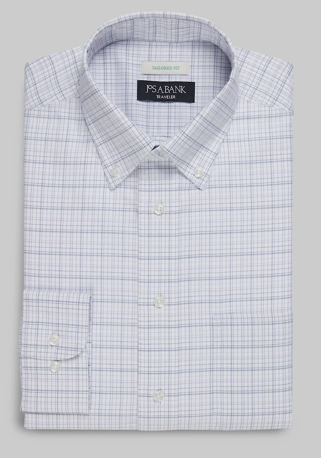 Jos. A. Bank Tailored Fit Button-Down Collar Check Dress Shirt CLEARANCE