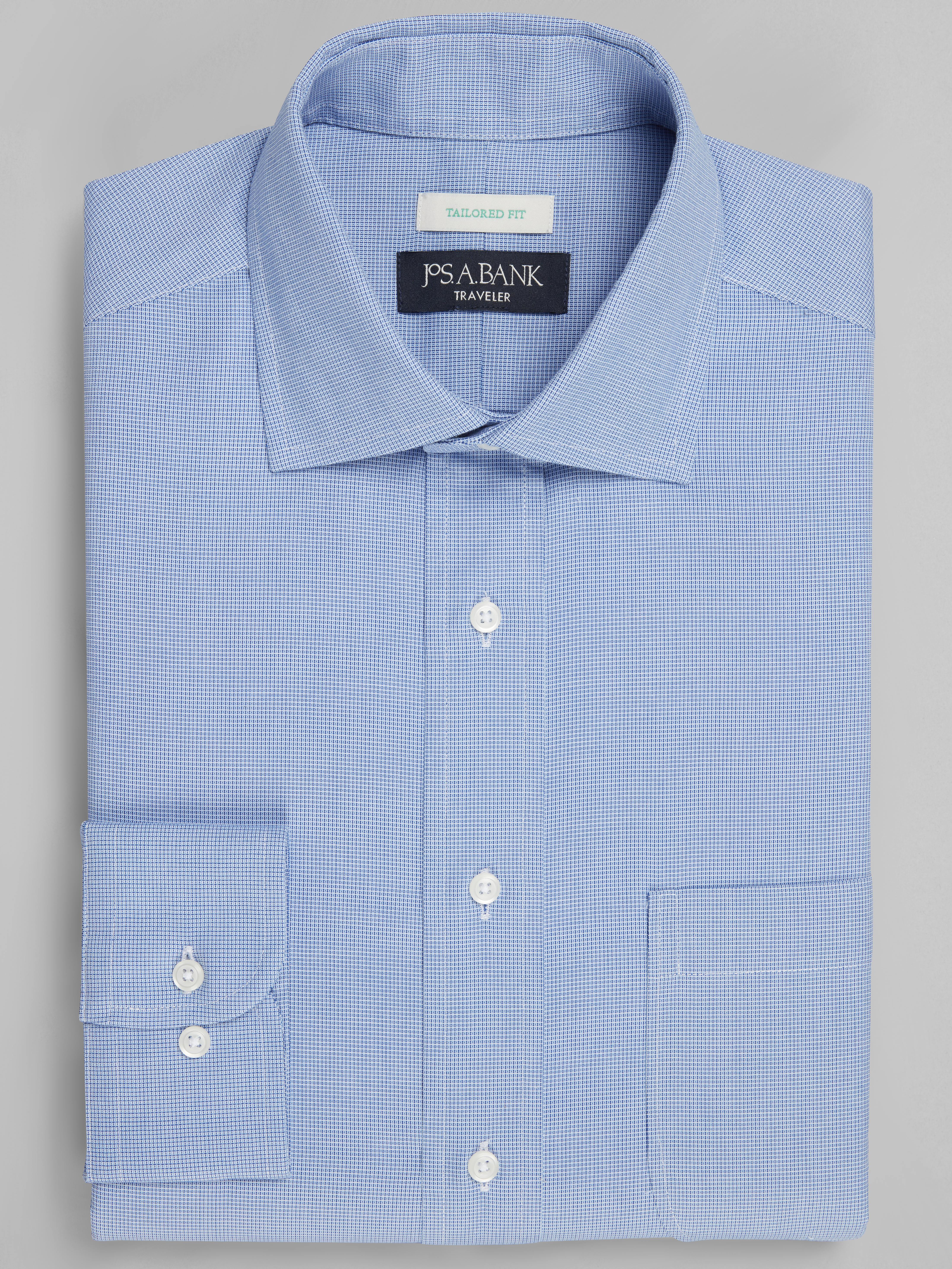 Men's Traveler® Collection Tailored Fit Spread Collar Tattersall Dress Shirt at Jos. A. Bank, Blue