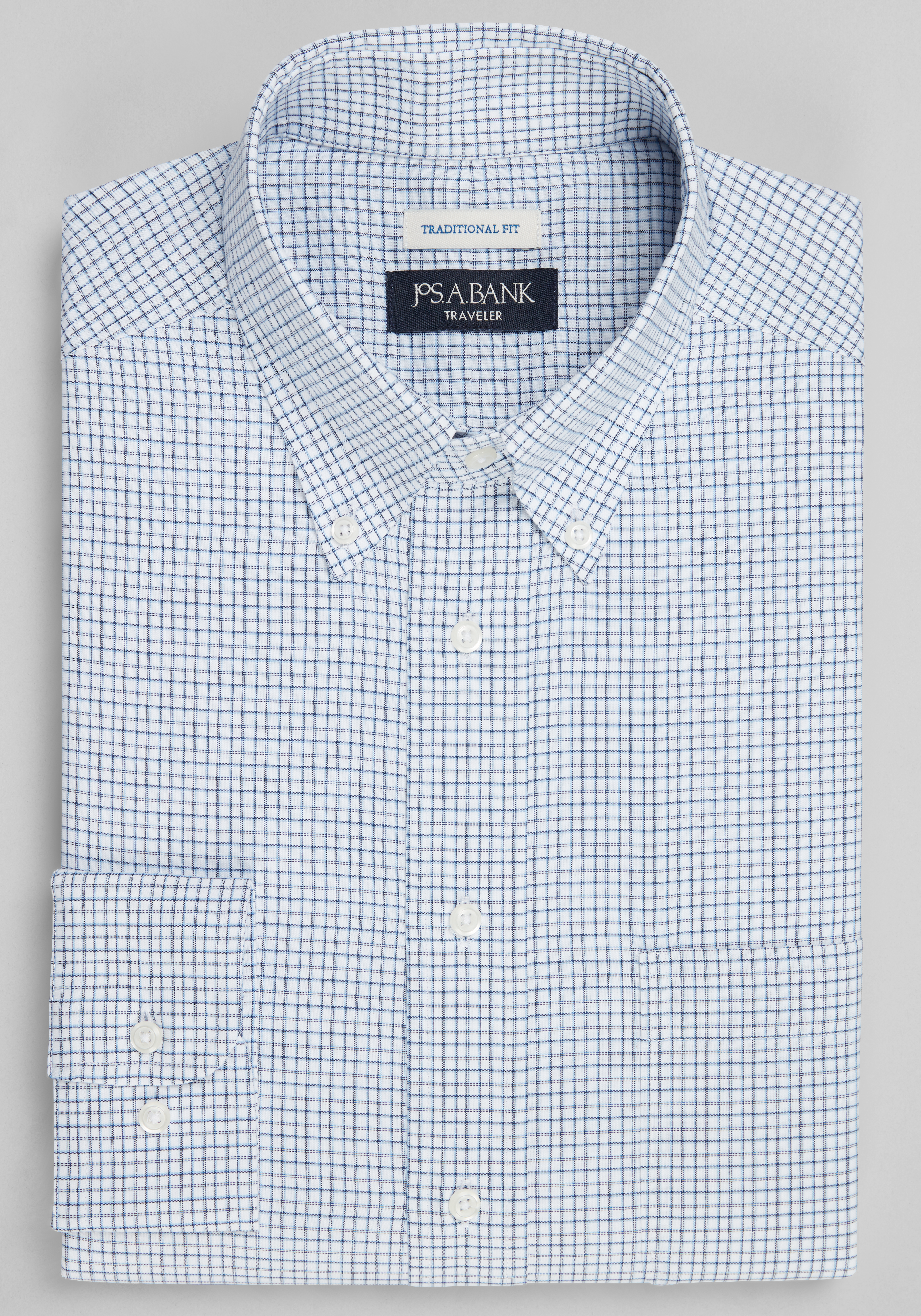 Men's Traveler® Collection Traditional Fit Button-Down Collar Check Dress Shirt at Jos. A. Bank, Blue