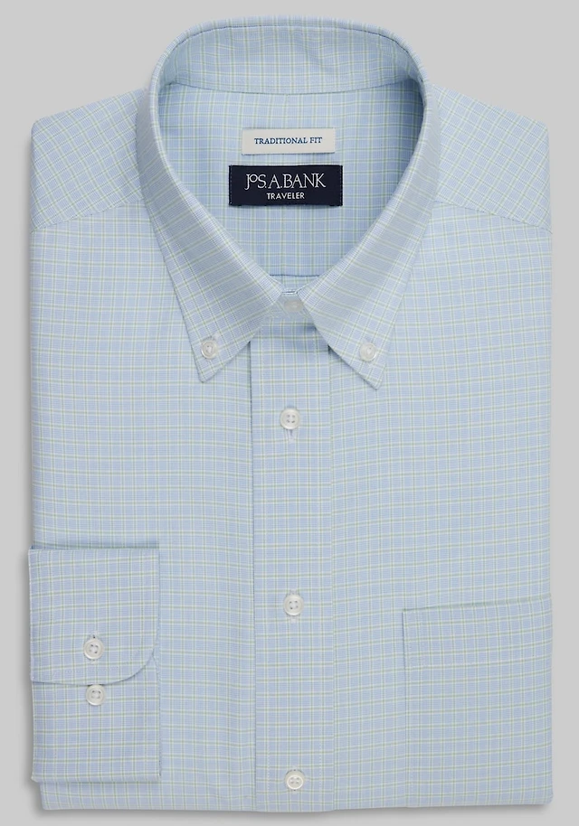 Men's Traveler® Collection Traditional Fit Button-Down Collar Plaid Dress Shirt at Jos. A. Bank, Green