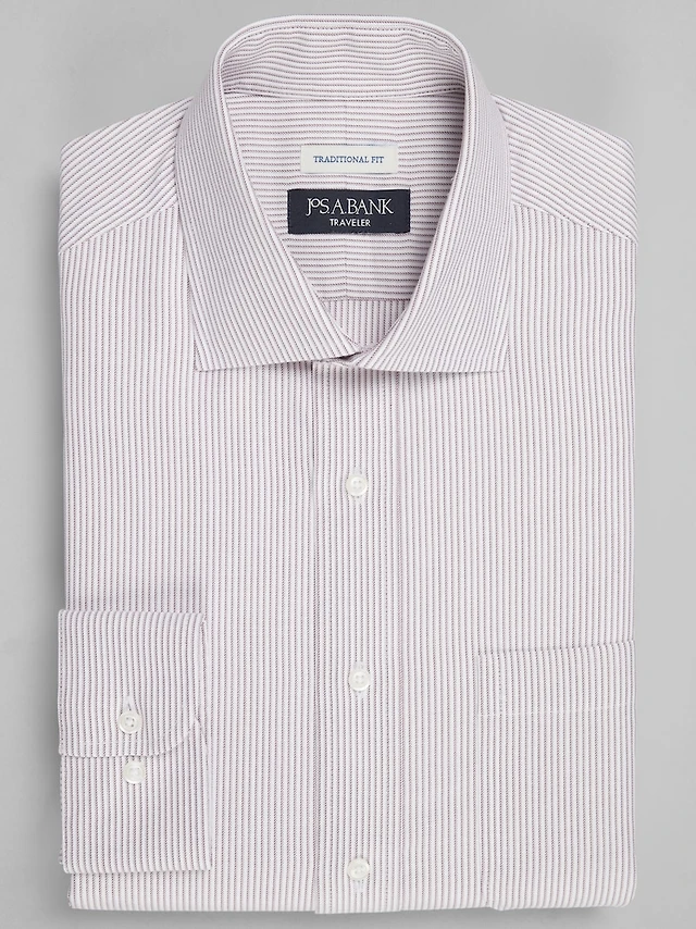 Men's Traveler® Collection Traditional Fit Spread Collar Stripe Dress Shirt at Jos. A. Bank, Burgundy