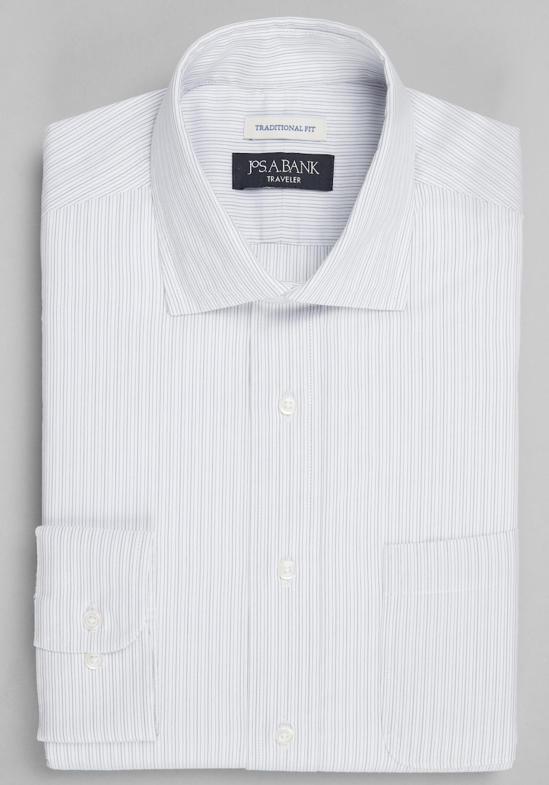 Men's Traveler® Collection Traditional Fit Spread Collar Stripe Dress Shirt at Jos. A. Bank, Grey
