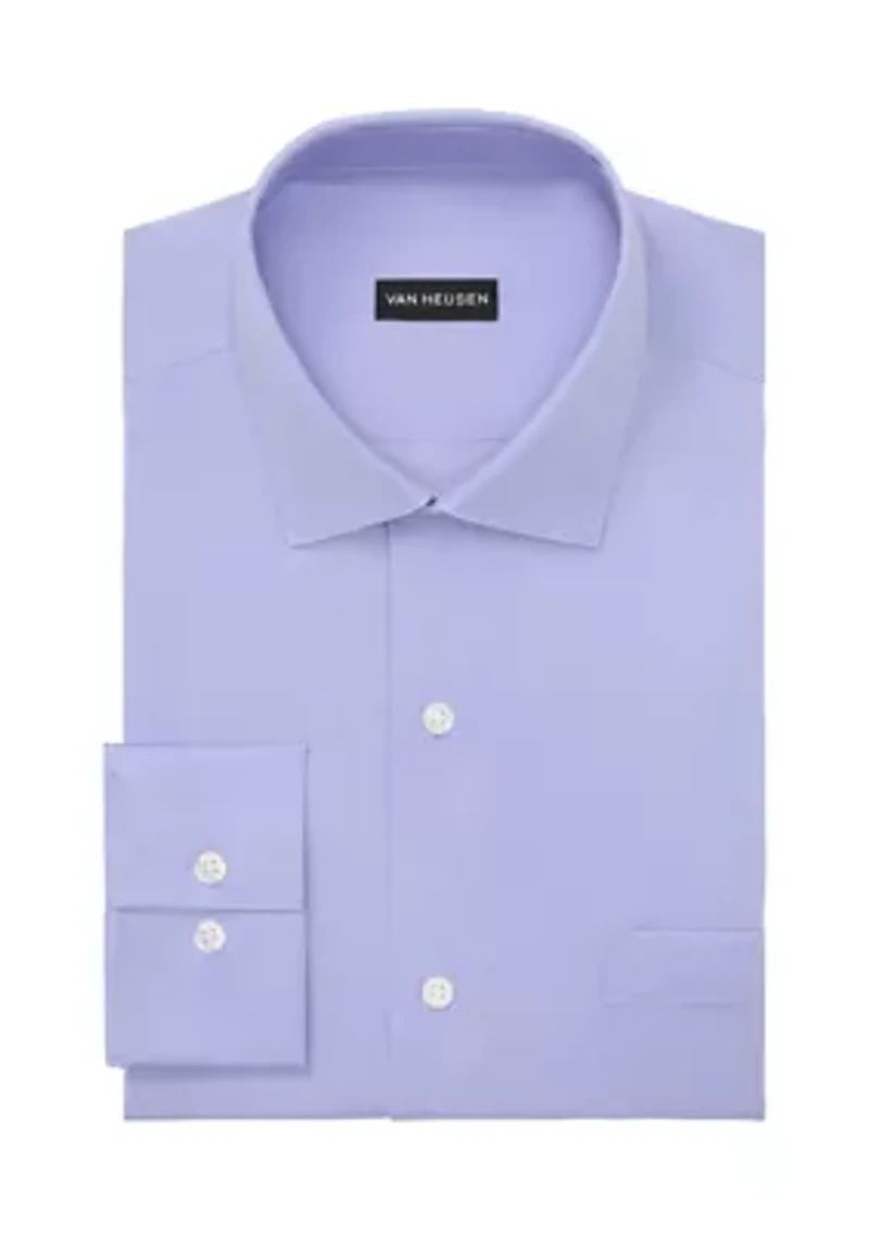 This dress shirt from Van Heusen is crafted from a specially treated fabric that offers exceptional wrinkle resistance, ensuring a crisp and polished look straight from the dryer. The added Flex Collar expands up to half an inch, providing additional comfort and flexibility. Made from a cotton blend, this shirt offers both breathability and a comfortable stretch. Button closure Spread collar Long button-cuff sleeves Imported Material & Care Cotton, polyester, spandex Machine washable