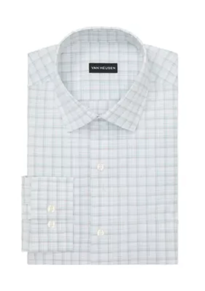 This dress shirt is crafted from a specially treated fabric that offers exceptional wrinkle resistance, ensuring a crisp and polished look straight from the dryer. Designed for men, it features a regular fit for a relaxed and classic silhouette. The shirt boasts a spread collar that provides a touch of sophistication and can expand up to half an inch for added comfort. Made from a blend of cotton, polyester, and spandex, this shirt offers both breathability and flexibility. Its plaid pattern adds a stylish touch, making it suitable for various occasions. Button closure Spread collar Long sleeves Plaid pattern Imported Material & Care Cotton, polyester, spandex Machine washable