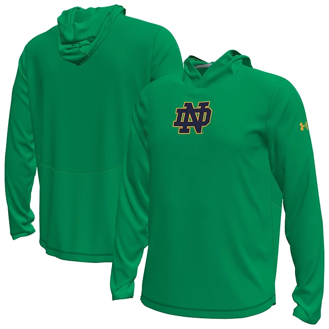 Men's Under Armour Kelly Green Notre Dame Fighting Irish Sideline Knockout Long-Sleeve Hooded T-Shirt