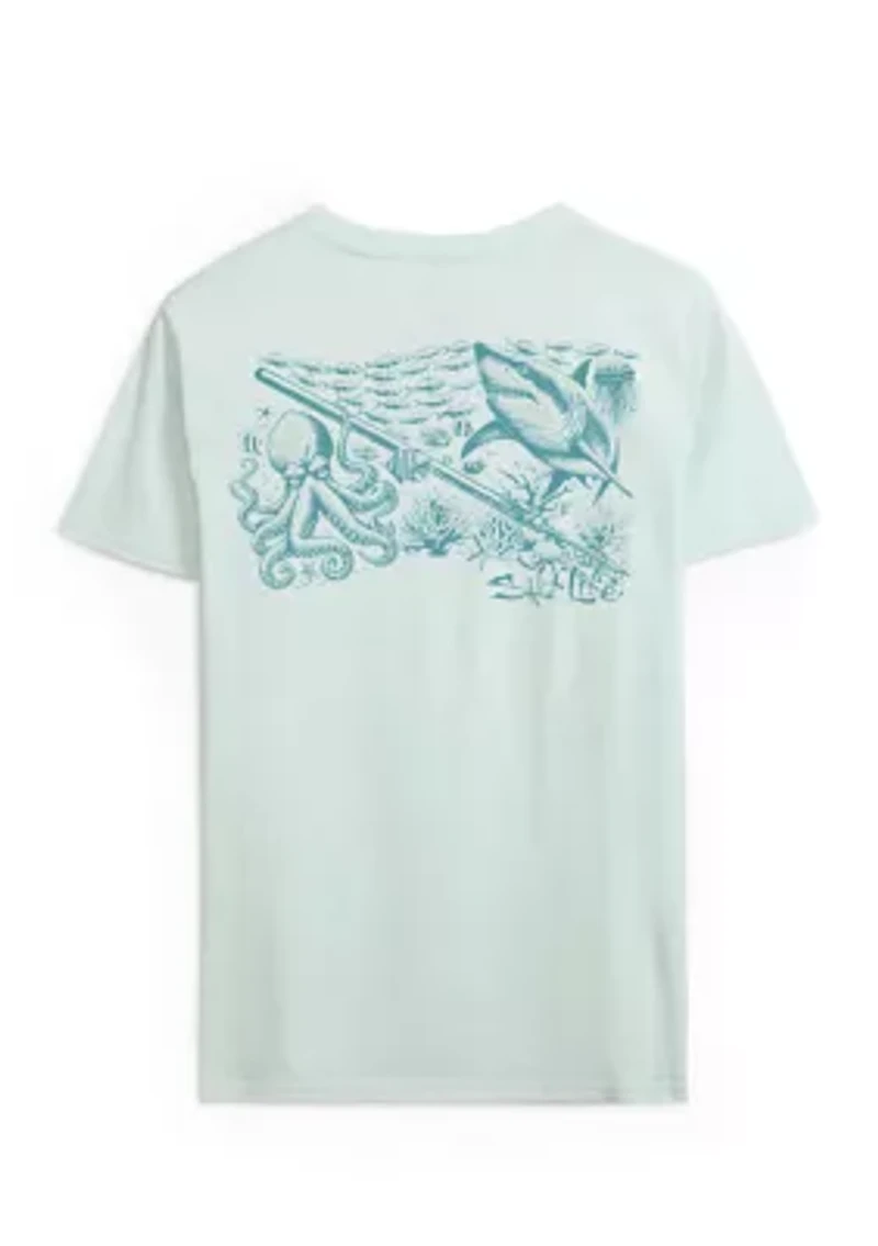 Dive into coastal comfort with the Salt Life Men’s Underwater Diving 2.0 30’s Short Sleeve T-shirt. Crafted from soft cotton 30’s preshrunk ringspun jersey, it keeps you effortless and breezy, while a chest Salt Life logo and back Underwater Diving 2.0 graphic add easygoing, beach-ready style. Crew neck Short sleeves Salt Life Graphic on Chest Underwater Diving 2.0 Screen Print at Back Content: 100% cotton 30’s Preshrunk Ringspun Jersey Turn inside out and machine wash cold, wash dark colors separately, hang to dry Imported