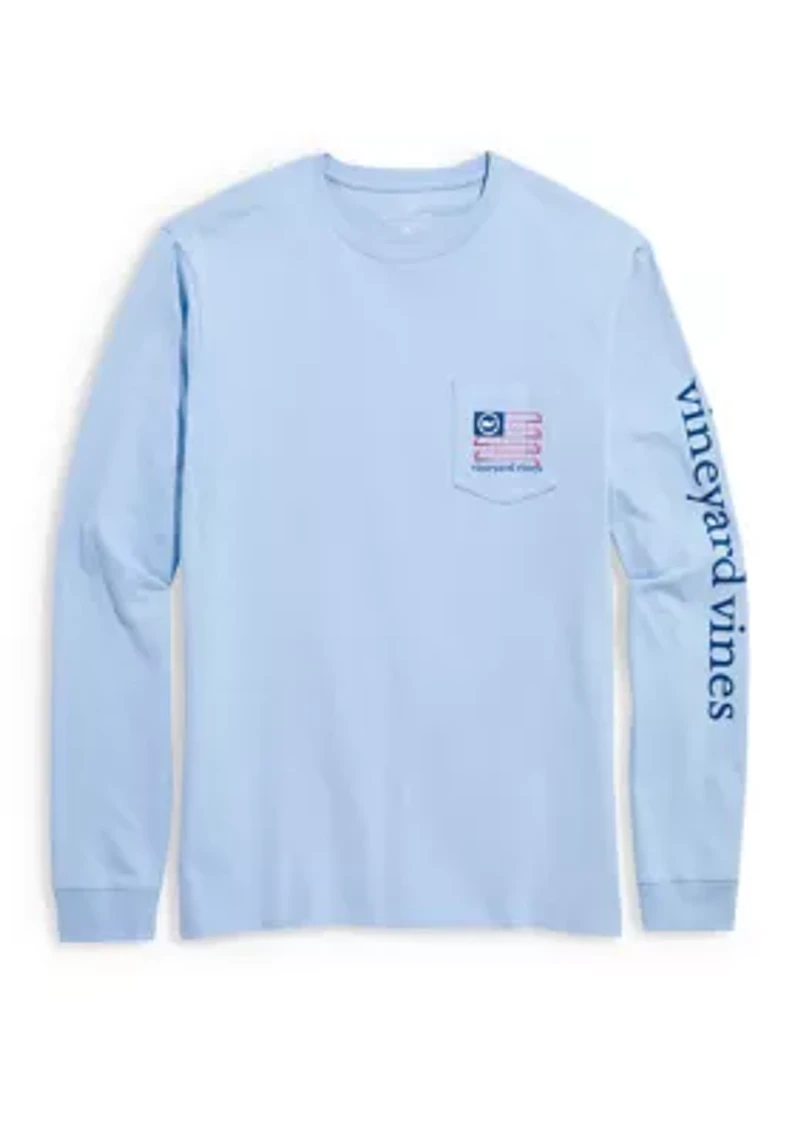 Sporting the USA golf flag on the back and chest pocket, this long sleeve t-shirt from Vineyard Vines is made from soft-washed durable cotton for complete comfort. Pullover Crew neck Long sleeves Chest patch pocket Imported Material & Care Cotton Machine washable