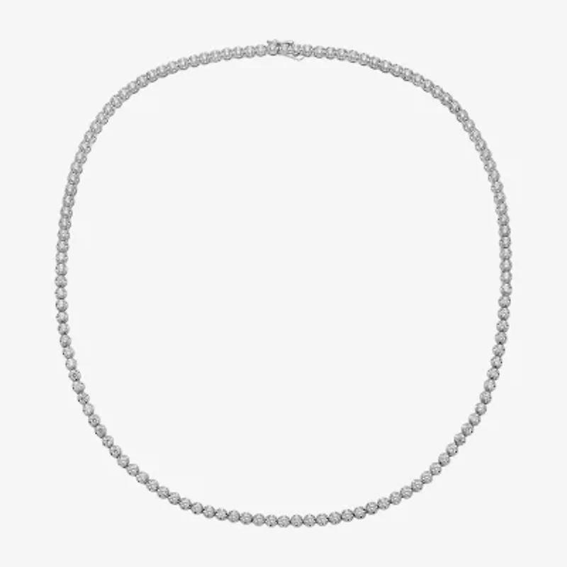 Mens White Diamond 10K White Gold 20 Inch Tennis Necklace
