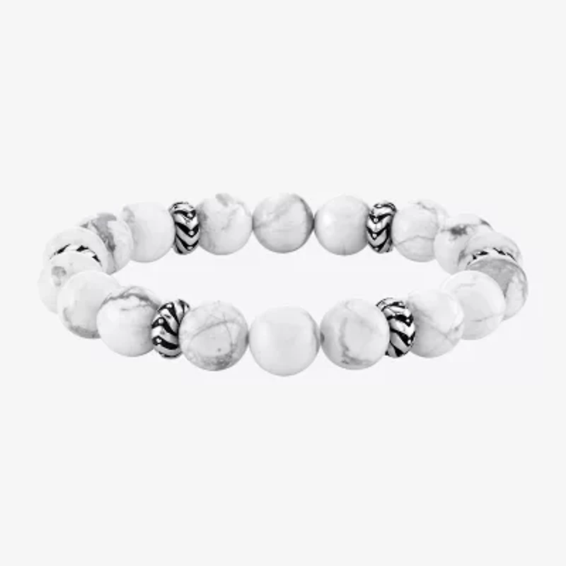 Mens White Howlite Sterling Silver Beaded Bracelet in Franklin, TN
