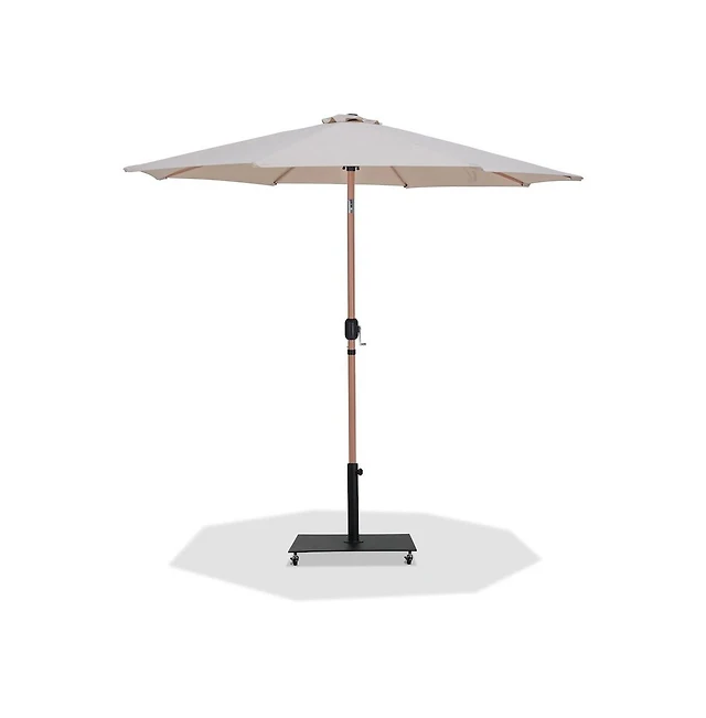 Meridian Furniture Fiji Beige Fabric / Teak Aluminum Patio Umbrella with Base Sets