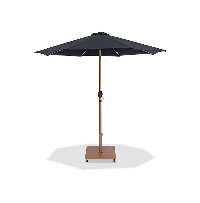 Meridian Furniture Fiji Black Fabric / Teak Aluminum Patio Umbrella with Base Sets