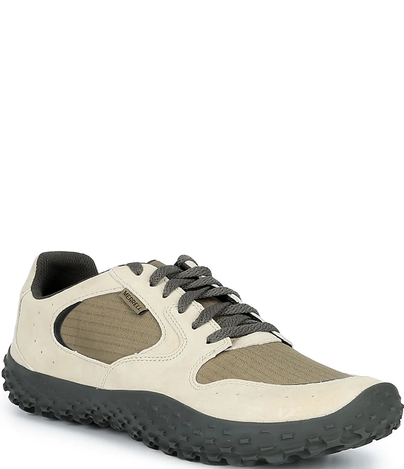 From Merrell, the Men's Wrapt Sneakers feature: Waterproof pig suede leather upper Lightweight and durable ripstop upper Traditional lace closure Padded collar 100% recycled breathable mesh lining 100% recycled mesh footbed cover Cleansport NXT™ treated for natural odor control Integrated EVA foam insole Merrell Barefoot 2 construction is designed to keep the foot in a natural position Softer and lighter internal EVA construction Merrell Quantum Grip™ durable rubber outsole that enables confidence in the most extreme trail environments Drop: 0mm Imported.