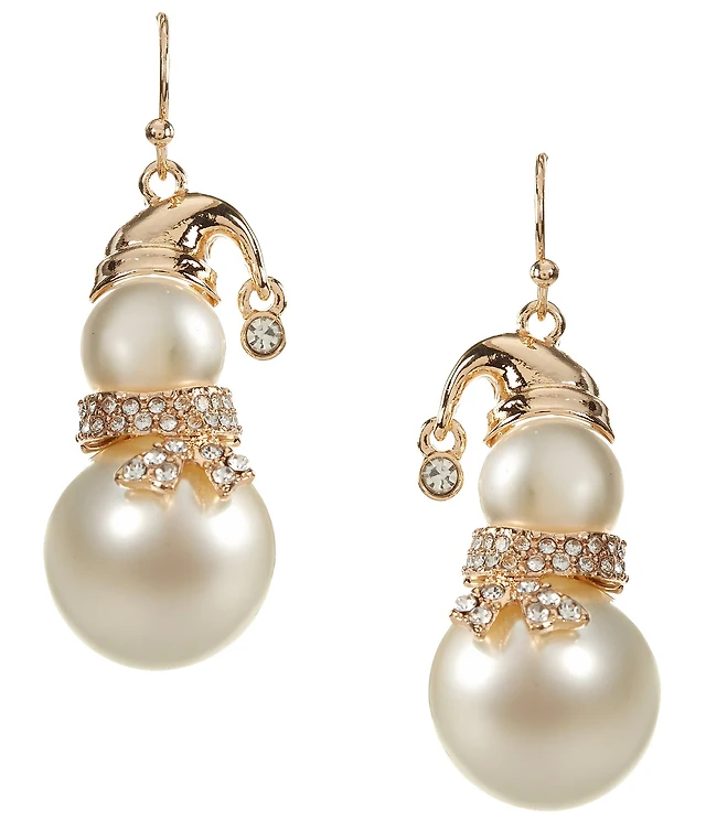 Merry & Bright Christmas Snowman Double Pearl Drop Earrings