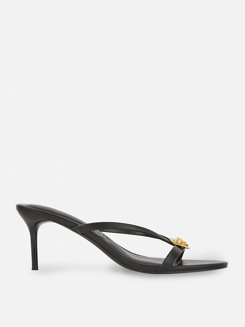 Metal Detail Kitten Mule Heels