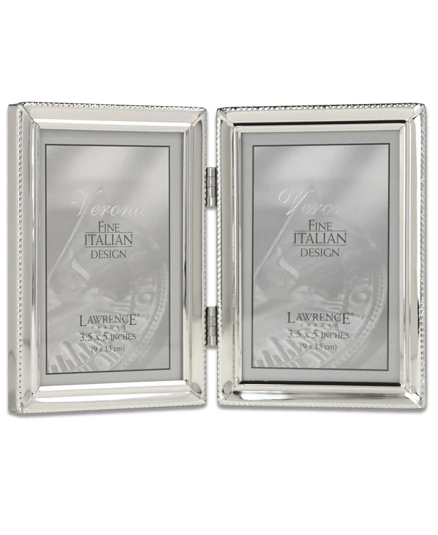 Lawrence Frames Polished Silver Plate Hinged Double Picture Frame - Bead Border Design