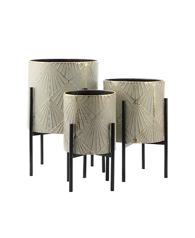 LuxenHome Set of 3 Metal Cachepot Planters with Stand