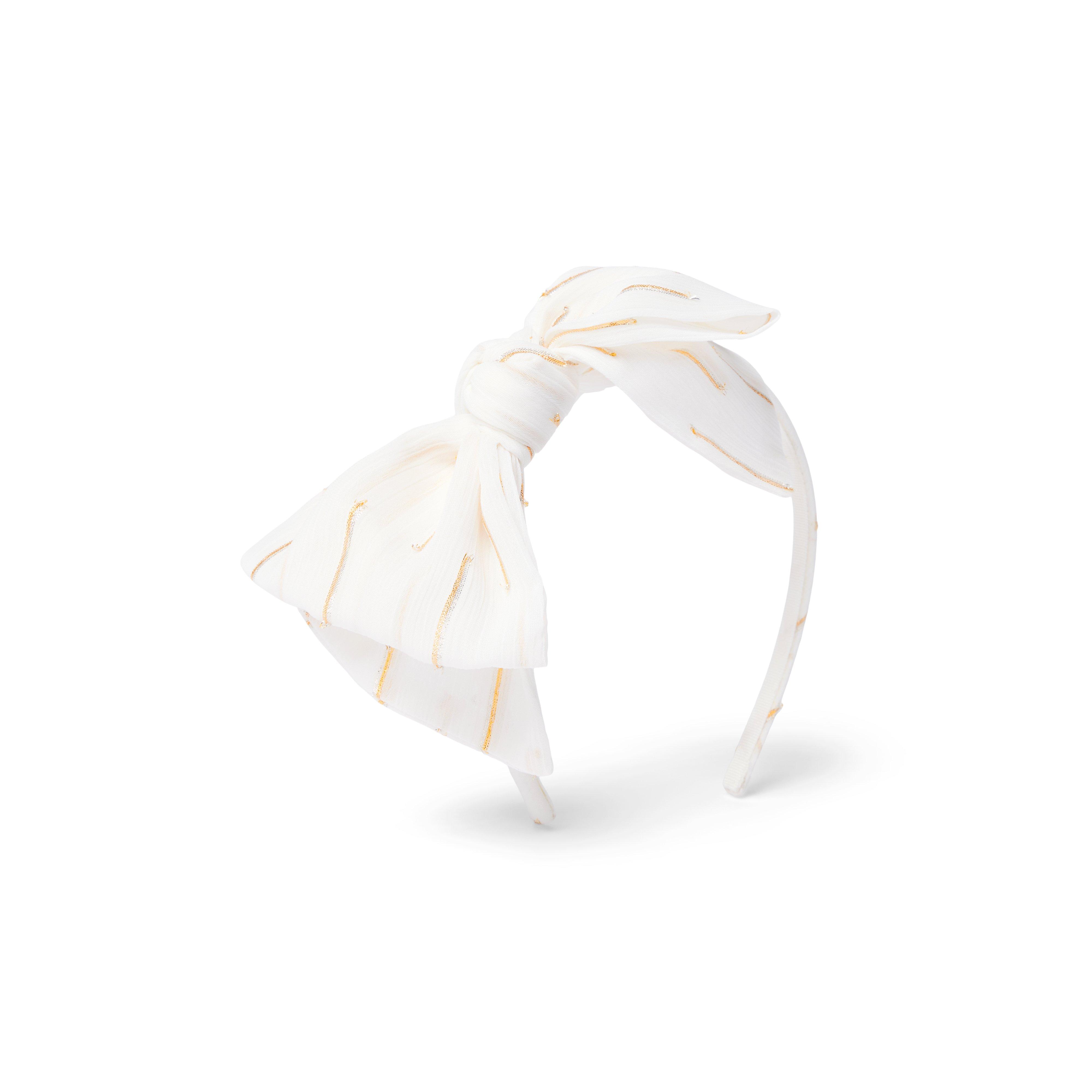 Top off any look with our metallic bow headband. It keeps hair comfortably in place. Chiffon; Manmade Material Spot Clean; Imported
