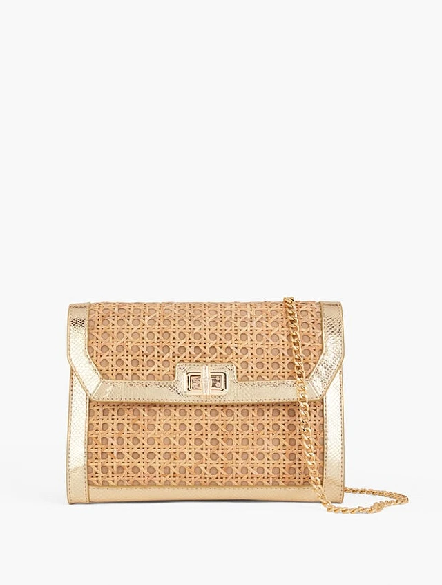 Metallic Leather Trim Rattan Clutch