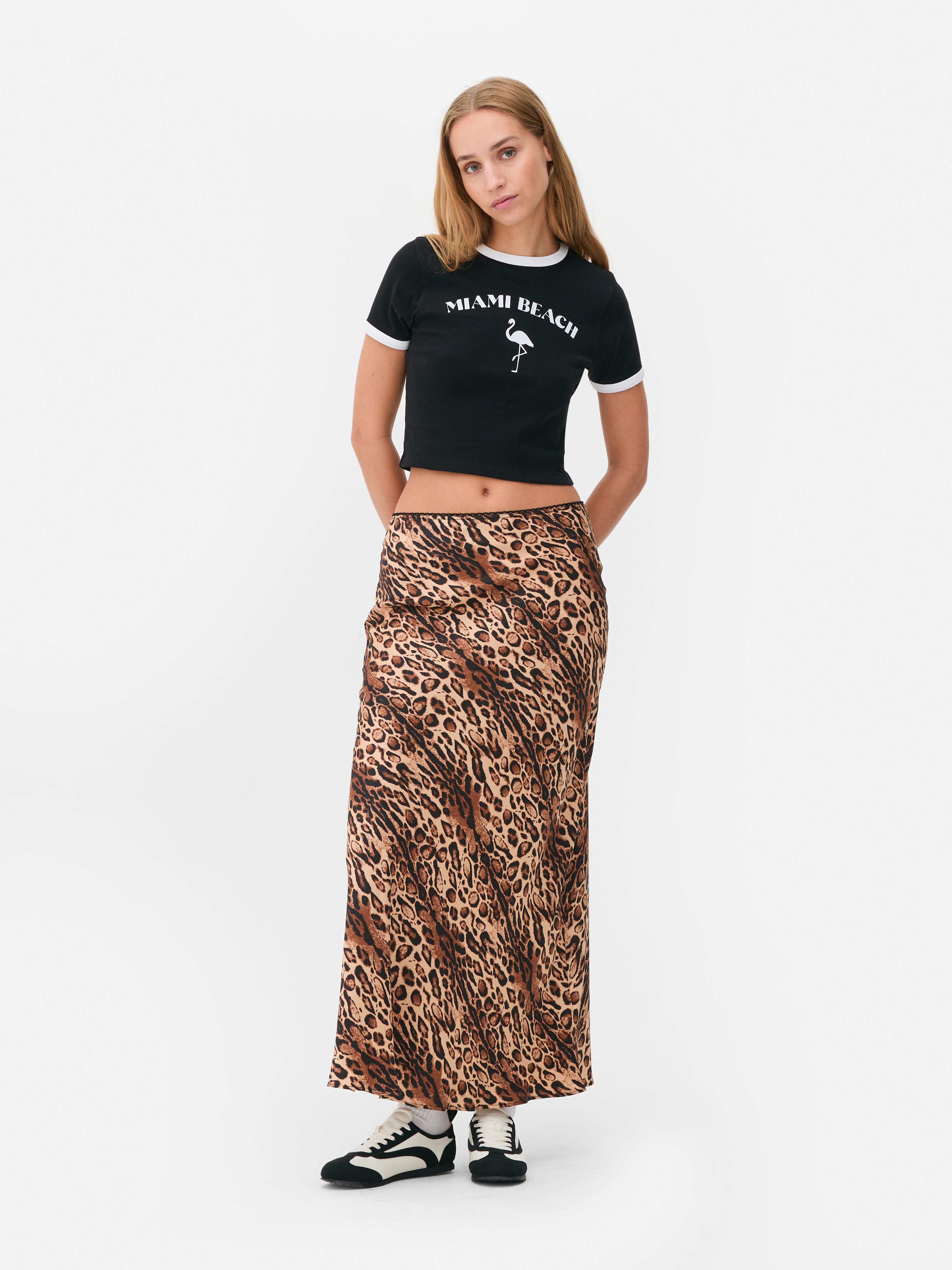 A cropped baby tee with contrast crew neck and Miami Beach graphic