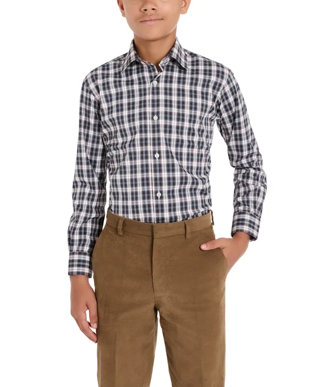 Michael Kors Big Boys Silver Classic Plaid Dress Shirt
