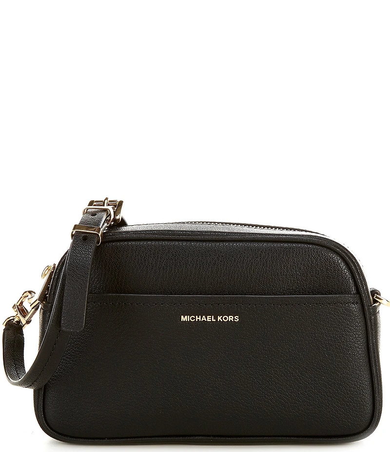 From Michael Kors, the Jet Set Small Camera Crossbody Bag features: Single sided embossed leather Zip closure Gold tone hardware Interior: 1 back slip pocket, exterior details, 1 front slip pocket Approx. 19.5" - 21.75" adjustable crossbody strap drop Approx. 8.5" L x 5.5" H x 3" W Imported.