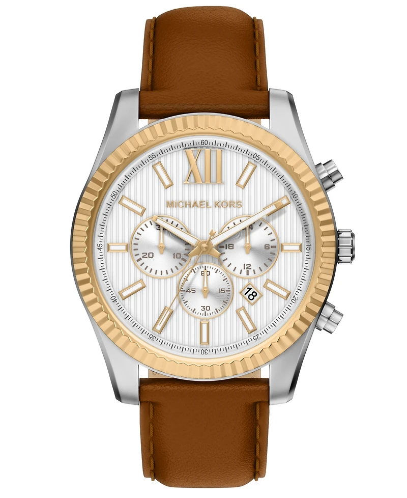 Michael Kors Men's Lexington Chronograph Luggage Leather Watch, 45mm