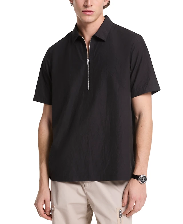Michael Kors Men's Relaxed Fit Short Sleeve Crinkle Popover Shirt