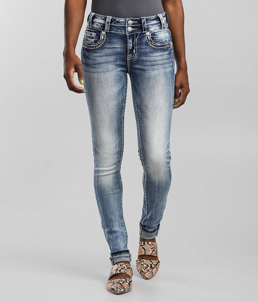 Standard Skinny - A classic mid-rise fit, designed with a slightly higher rise for extra coverage, fitted through the hip and thigh. Mid-rise Cuffed - extend your inseam 1" when uncuffed Slim through the hip and thigh 10" bottom opening Destructed hem and pieced waistband details Shoe sku 959241 Studio Model Info: Height: 5'7" | Bust: 34" | Waist: 27 1/2" | Hip: 35" | Wearing Size: 25x32 Lifestyle Model Info: Not Available