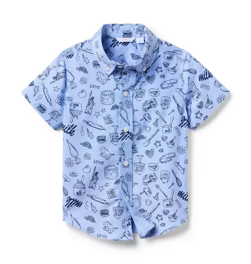 Our recipe for the perfect look starts with this favorite in pure cotton oxford. Featuring an exclusive print inspired by NYC's iconic Milk Bar, plus tailored details like collar point buttons. 100% Cotton Oxford Short Sleeve Button Front Machine Washable; Imported