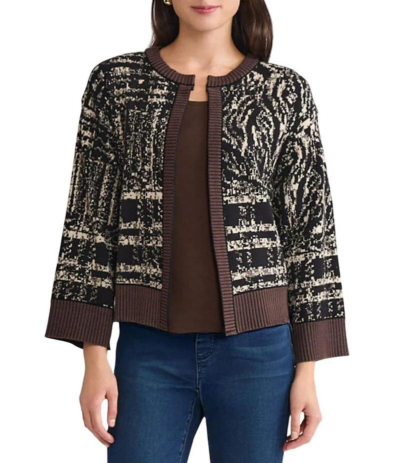 Ming Wang Contrast Cozy Knit Round Neck Bracelet Flare Sleeve Cardigan in Franklin, TN