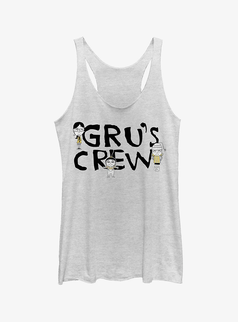 The girls made you a candy bear soup and the Despicable Me 3 Gru's Crew Juniors' Racerback Tank Top. Gru's daughters Agnes, Edith, and Margo are featured with "Gru's Crew" on this funny fitted Despicable Me 3 tank top.