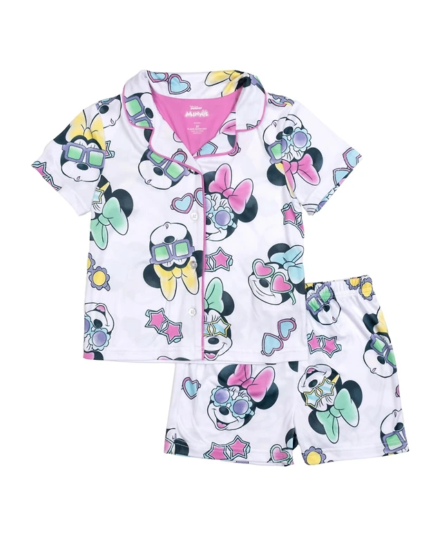 Minnie Mouse Toddler Girls Short Sleeve Button Down Sleep Short and Shorts, 2-Piece Pajama Set
