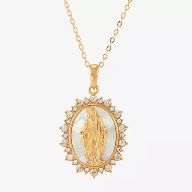 Miraculous Medal Womens White Mother Of Pearl 14K Gold Over Silver Oval 20 Inch Pendant Necklace