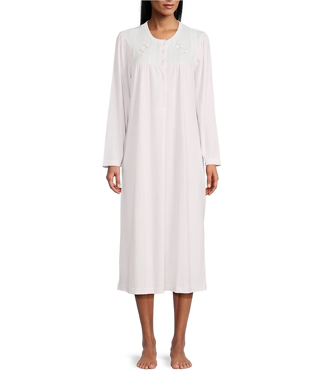Eileen West Solid Interlock Knit Long Sleeve Round Neck Ballet Nightgown