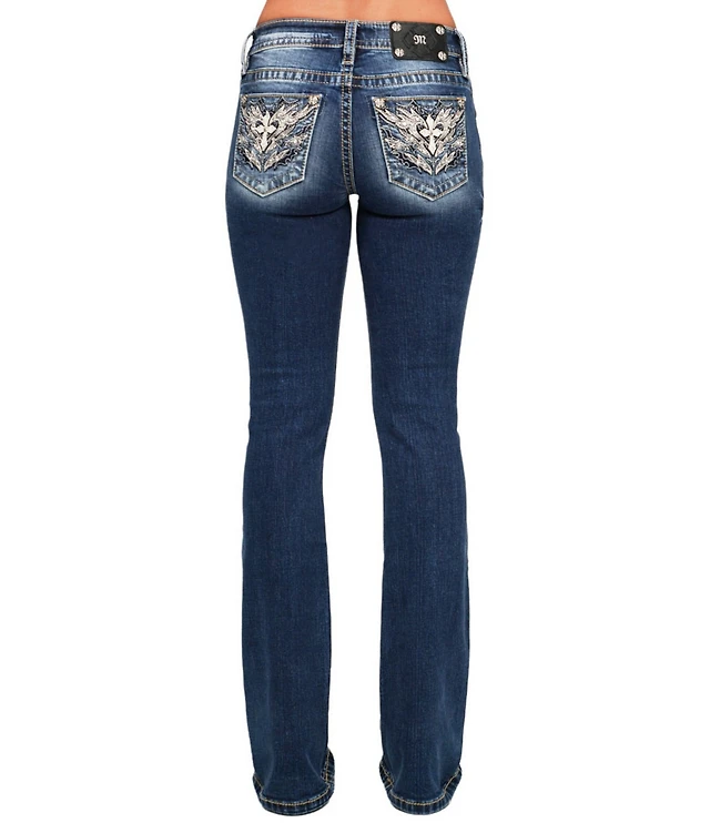 Miss Me Embellished Wing Flap Pocket Mid Rise Bootcut Jeans