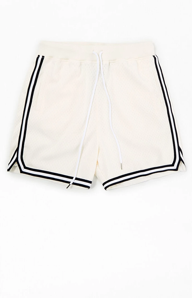 Show off your casual style with the Cream Gameday Mesh Shorts from Mitchell & Ness. Crafted from mesh fabric with a ribbed elastic waistband, adjustable drawstrings, side hand pockets, a single back pocket and contrast trimming, these shorts offer a relaxed fit for a comfortable and stylish look.