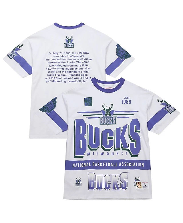 Mitchell & Ness Men's and Women's White Milwaukee Bucks Hardwood Classics Vintage Team Origins Premium T-Shirt