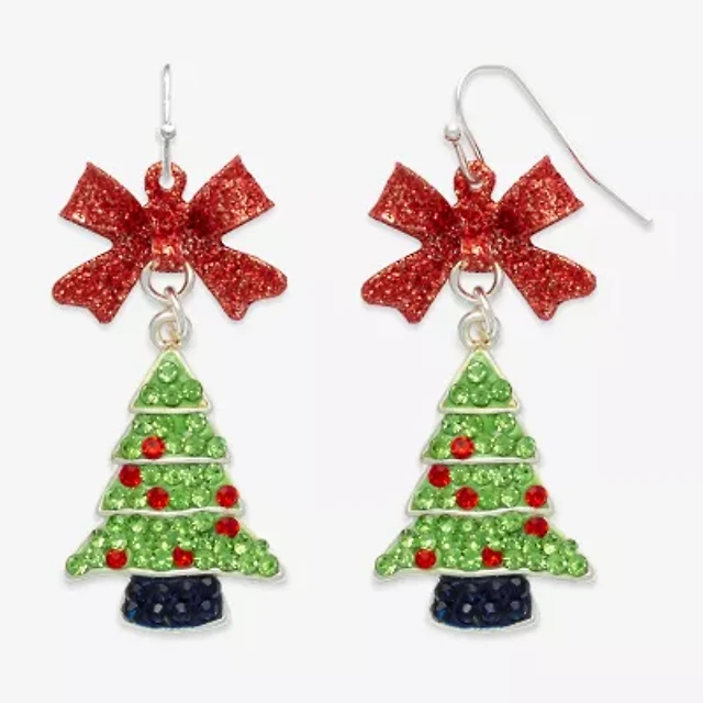Mixit Bow And Christmas Tree Womens Multi Color Cubic Zirconia Drop Earrings