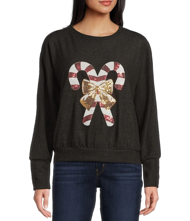 Moa Moa Candy Cane Bow Hacci Long Sleeve Crew Neck Sweater