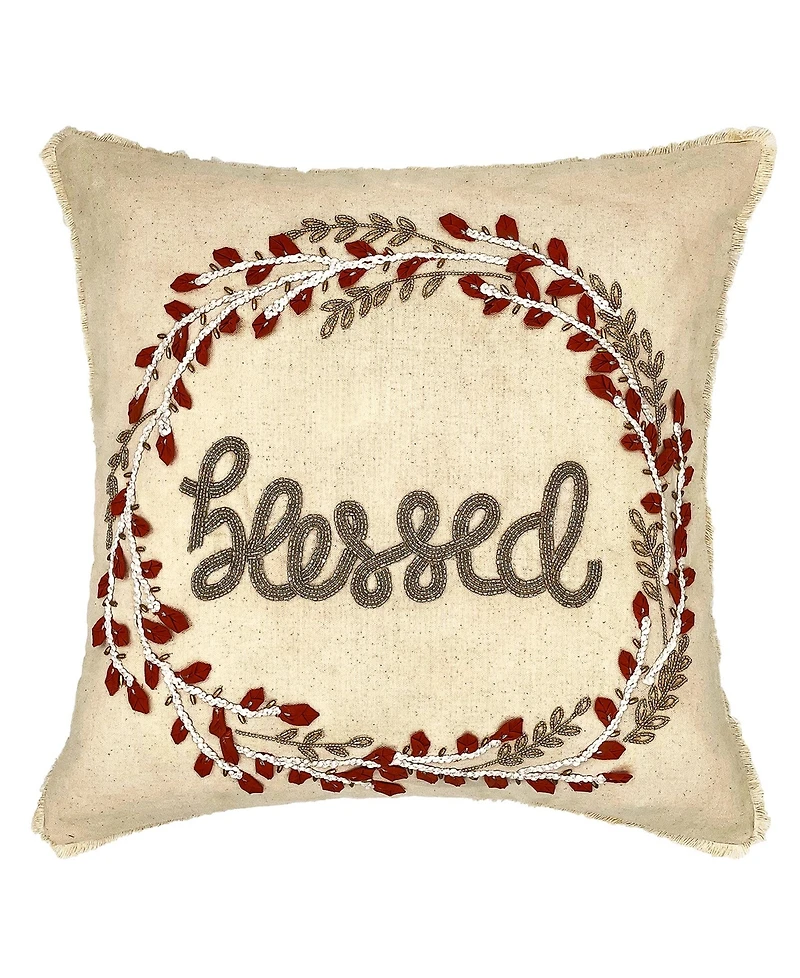 Mod Lifestyles Blessed Wreath Embroidered Decorative Pillow, 18" x 18"