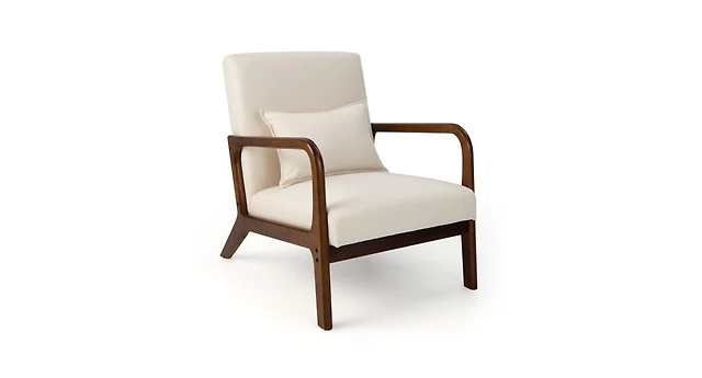 Slickblue Accent Chair with Lumbar Pillow Natural Rubber Wood Legs Padded Cushions